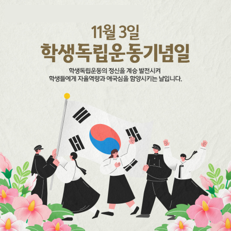 - 의미: 일제강점기인 1929년 11월 3일 광주에서 시작되어 전국으로 확산된 학생 항일 운동의 정신을 계승하고 발전시키며, 학생들에게 자율적인 역량과 애국심을 기르도록 하는 목적으로 제정된 날입니다.