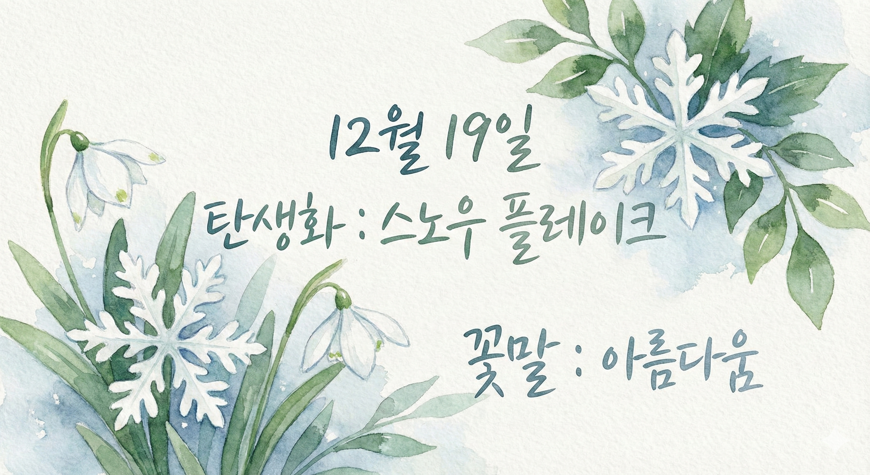 탄생화: 스노우 플레이크 (Snowflake) 오늘의 탄생화는 '스노우 플레이크'입니다. 이름처럼 눈송이를 닮은 하얀 꽃으로, 꽃말은 '아름다움'입니다. 추운 겨울 속에서도 순백의 아름다움을 간직한다는 의미가 있어, 오늘 태어난 분들은 내면의 아름다움을 지닌 분들이 많다고 합니다.